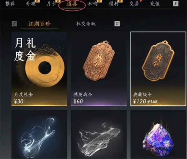 進入《燕雲十六聲》遊戲後,首先打開主介面中的「商城」或相關商店頁籤。接著切換到「道具」或功能性道具分類,就有機會看到名為「改名帖」的道具條目。